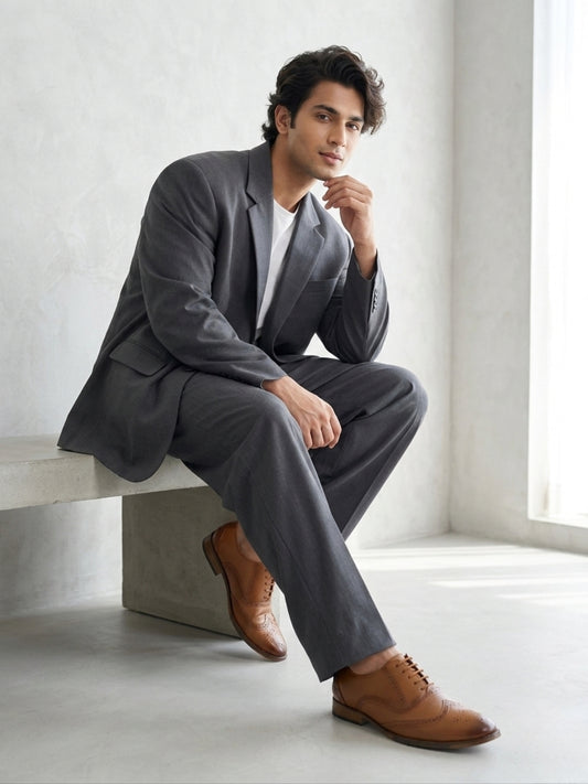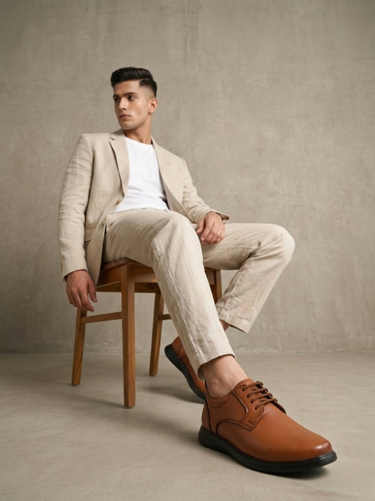 Hirolas Men's Executive Genuine Leather Tan Formal Brogue Shoes