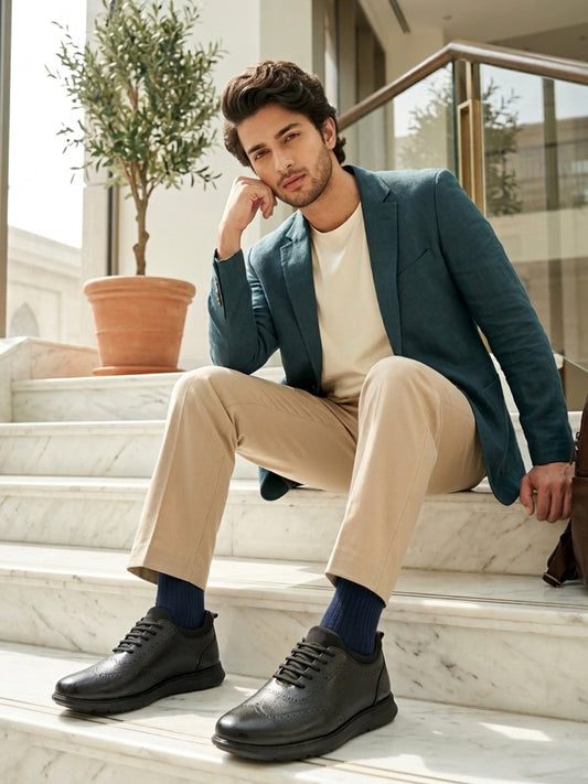 Hirolas Men's Executive Black Genuine Leather Brogue Formal Shoes
