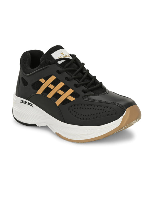 Hirolas® Men's Black/Beige Velocity Max Running Lace Up Sport Shoes (HRL2078BLB)