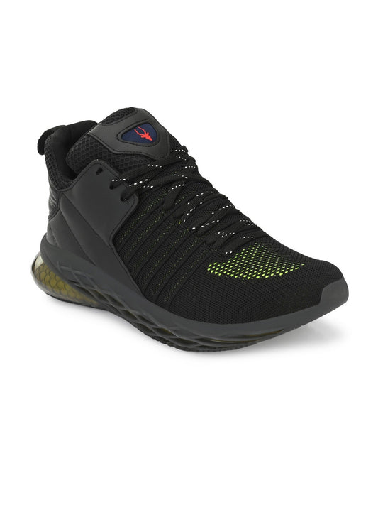 Hirolas® Men's Black/P.Green Elite Shock Absorbing Walking running Fitness Athletic Training Gym Ankle Fashion Lace Up Sport Shoes (HRLMP03BLK)