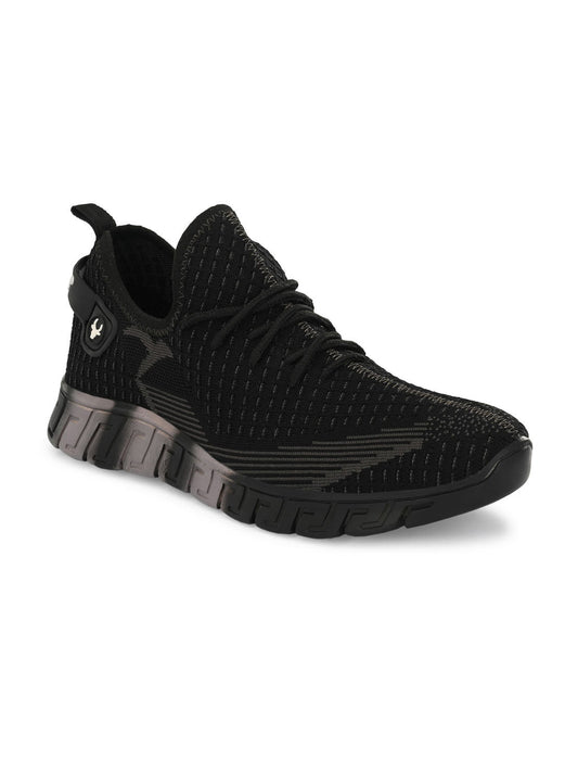 Hirolas® Men's Black/Grey Knitted Athleisure Lace Up Sport Shoes (HRL2015BLK)