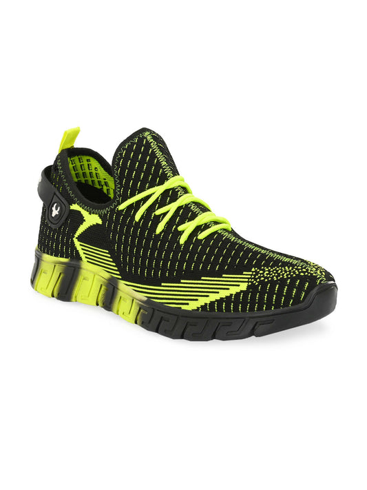 Hirolas® Men's Black/Green Knitted Athleisure Lace Up Sport Shoes (HRL2015GRN)