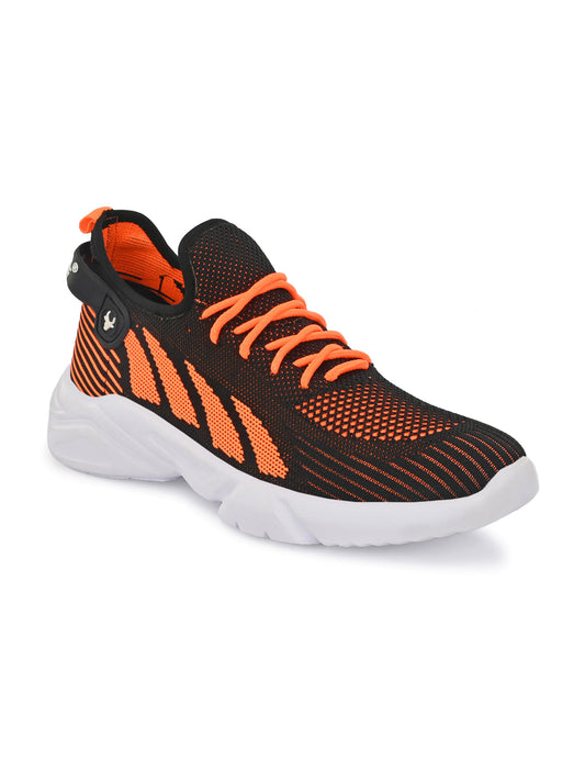 Hirolas® Men's Black/Orange Knitted Athleisure Lace Up Sport Shoes (HRL2016BLO)