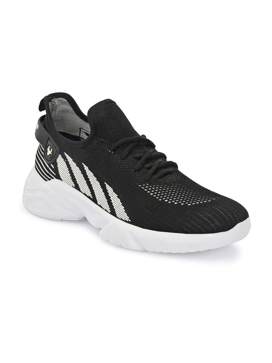 Hirolas® Men's Black/White Knitted Athleisure Lace Up Sport Shoes (HRL2016BLW)