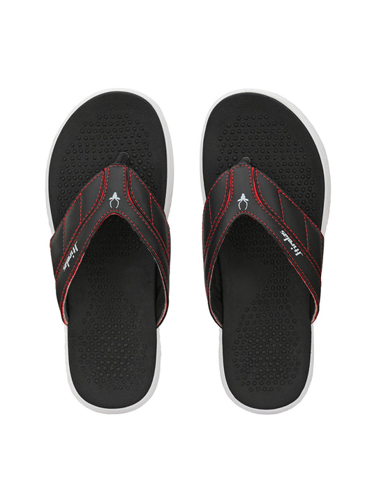 Hirolas® Men's Black/Red CLOUDWALK | Comfortable | Ultra-Soft | Light-Weight | Shock Absorbent | Bounce Back Technology | Water-Resistant Slippers (HROFF31BLR)