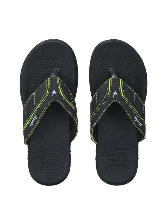Hirolas® Men's Black/Green CLOUDWALK | Comfortable | Ultra-Soft | Light-Weight | Shock Absorbent | Bounce Back Technology | Water-Resistant Slippers (HROFF31BLG)