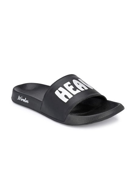 Hirolas® Men's Black Printed Slider Flip-Flops (HROMSL03BLK)