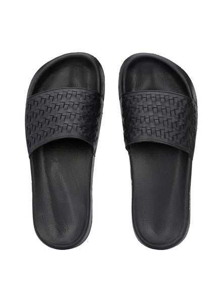 Hirolas® Men's Black Weaved Slider Flip-Flops (HROMSL02BLK)