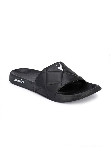 Hirolas® Men's Black Quilted Slider Flip-Flops (HROMSL04BLK)