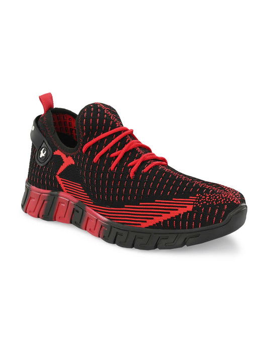 Hirolas® Men's Black/Red Knitted Athleisure Lace Up Sport Shoes (HRL2016BLR)