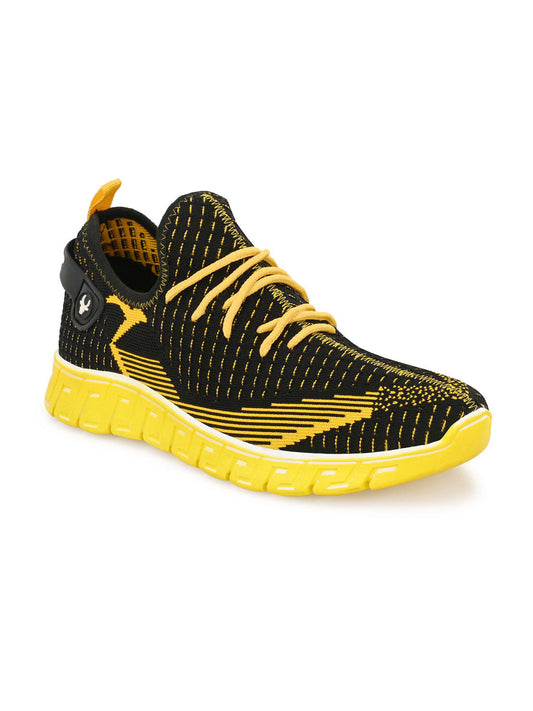 Hirolas® Men's Black/Yellow Knitted Athleisure Lace Up Sport Shoes (HRL2016BLY)