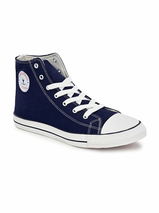 Hirolas® Men's Blue Canvas Vulcansied Skateboard Lace Up Ankle Length Sneaker Shoes (HRL2077BLU)