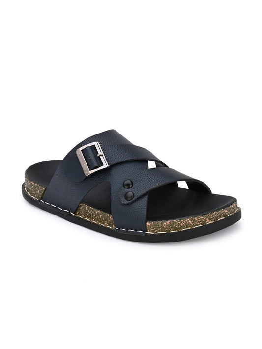 Hirolas® Men's Blue Cushioned Fluffy Slider Slippers (HROMSL05BLU)
