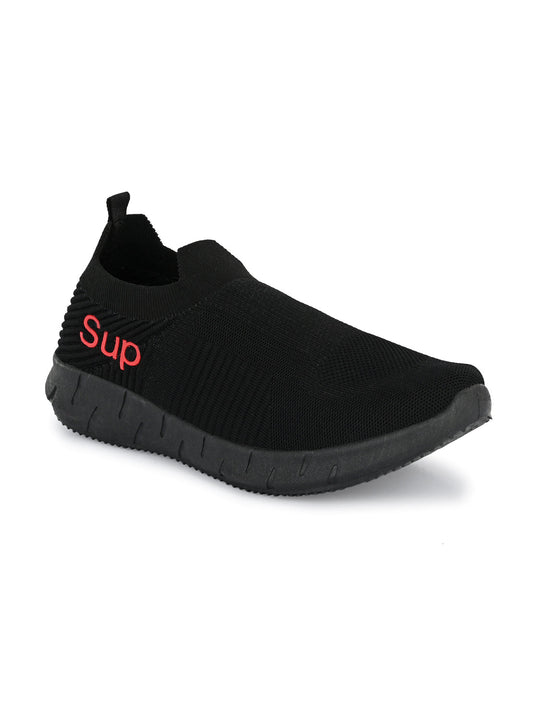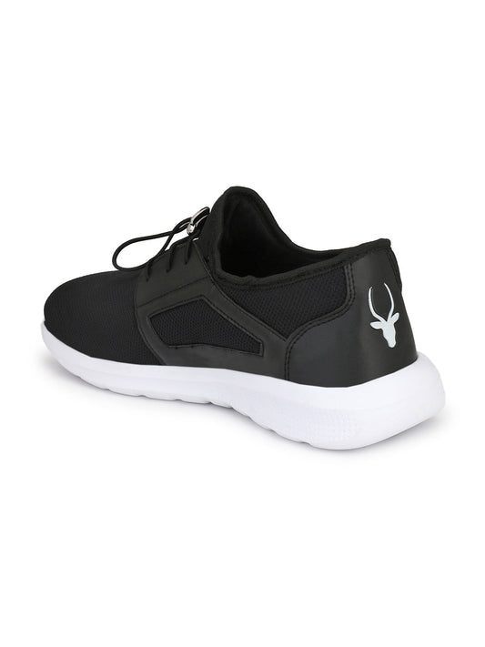 Hirolas® Men's Jezz Black Elastic Lace Up Athleisure Sport Shoes (HRL1951EBK)