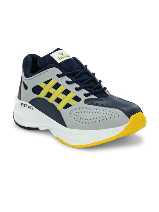 Hirolas® Men's Grey/Yellow Velocity Max Running Lace Up Sport Shoes (HRL2078GRY)