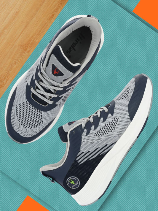 Hirolas® Men's Grey/Blue Elite Shock Absorbing Walking Running Fitness Athletic Training Gym Fashion Sport Shoes (HRLMP01GRY)
