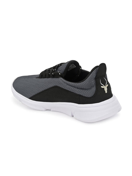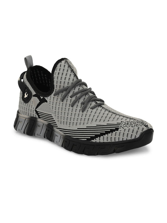 Hirolas® Men's Grey/Black Knitted Athleisure Lace Up Sport Shoes (HRL2015GRY)