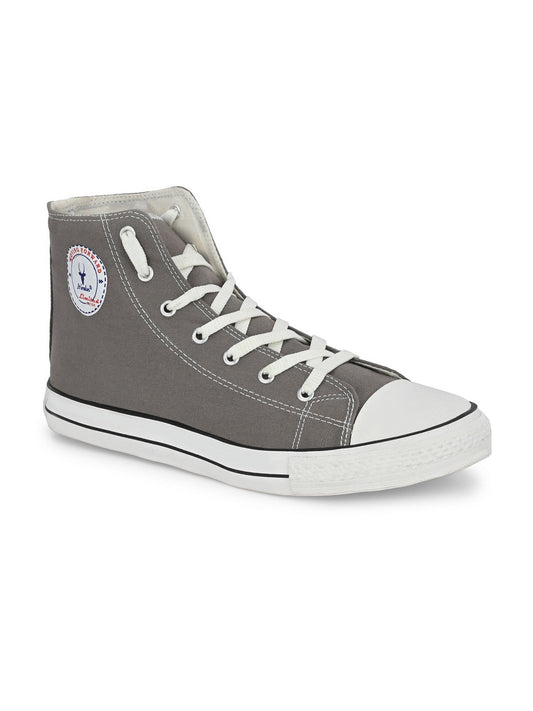 Hirolas® Men's Grey Canvas Vulcansied Skateboard Lace Up Ankle Length Sneaker Shoes (HRL2077GRY)