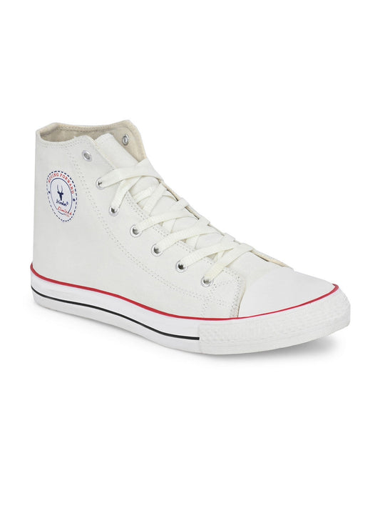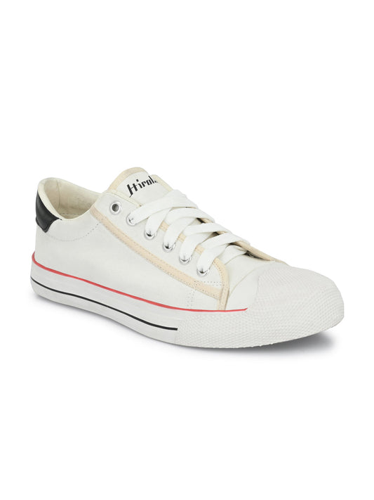 Hirolas® Men's white Canvas Vulcansied Skateboard Lace Up Ankle Length Sneaker Shoes (HRL2077WHT)