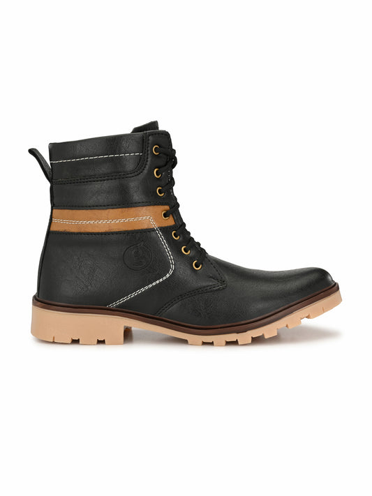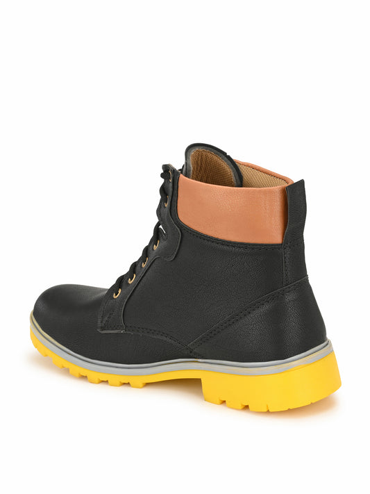 Guava Men's Black Plain derby Boots (GV15JA689)
