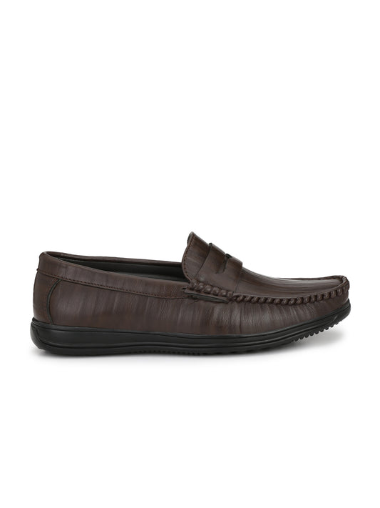 Guava Men's Brown Textured Embossed 360 Flexible Slip On Driving Loafers (GV20JA715)