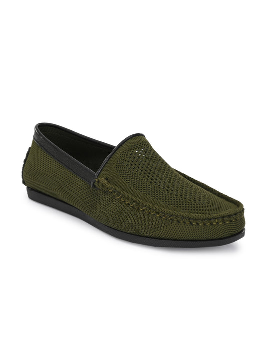 Guava Men's Olive Knitted Slip On Driving Loafers (GV15JA761)