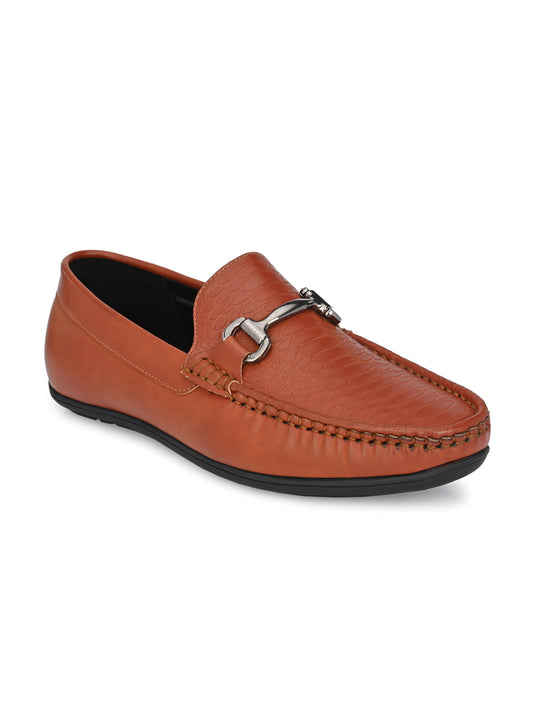 Guava Men's Tan Textured Embossed 360 Flexible Slip On Driving Loafers (GV20JA716)