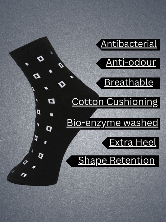 Hirolas Cotton Anti-Odour Breathable Antibacterial business Formal/office wear Crew full length Socks for Men (Free Size) | Made with 100% Combed Cotton and Spandex (Navy, Black, White) - Pack of 3 socks