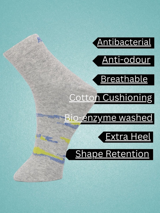 Hirolas Cotton Anti-Odour Breathable Antibacterial business Formal/office wear Crew full length Socks for Men (Free Size) | Made with 100% Combed Cotton and Spandex (Navy, White, Grey) - Pack of 3 socks