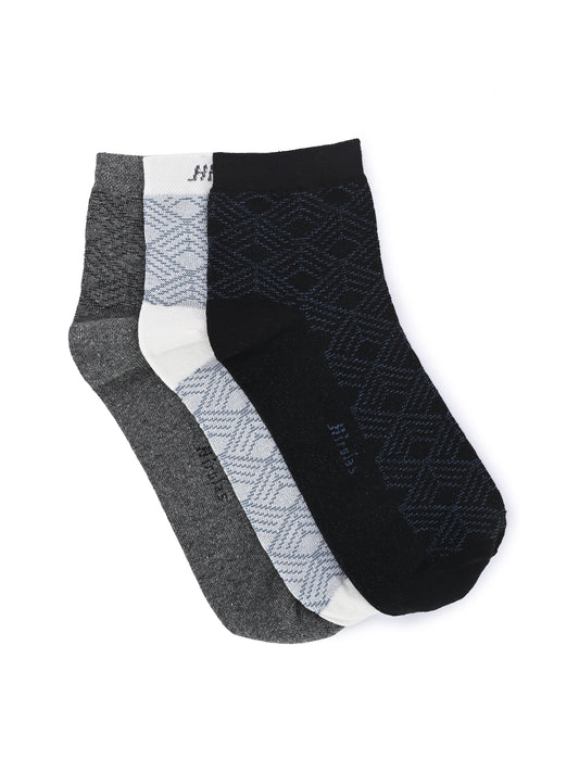 Hirolas Cotton Anti-Odour Breathable Antibacterial cushioned Gym, Sports, Running Ankle length Socks for Men (Free Size) | Made with 100% Combed Cotton and Spandex (Navy, Black, White) - Pack of 3 socks