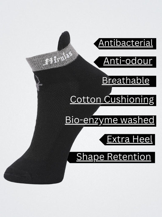 Hirolas thick cotton Half Terry cushioned Anti-Odour Breathable Antibacterial Gym, Running, Performance Athletic Running Ankle length Sports Socks for Men (Free Size) | Made with 100% Combed Cotton and Spandex (Black, Light Grey, White) - Pack of 3 socks