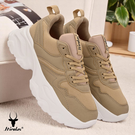Hirolas women Chunky Mesh & Synthetic Beige Sports_Shoes