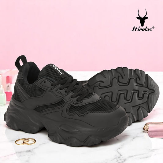 Hirolas women Chunky Mesh & Synthetic Black Sports_Shoes