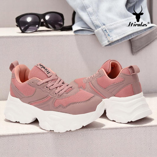 Hirolas women Chunky Mesh & Synthetic Pink Sports_Shoes