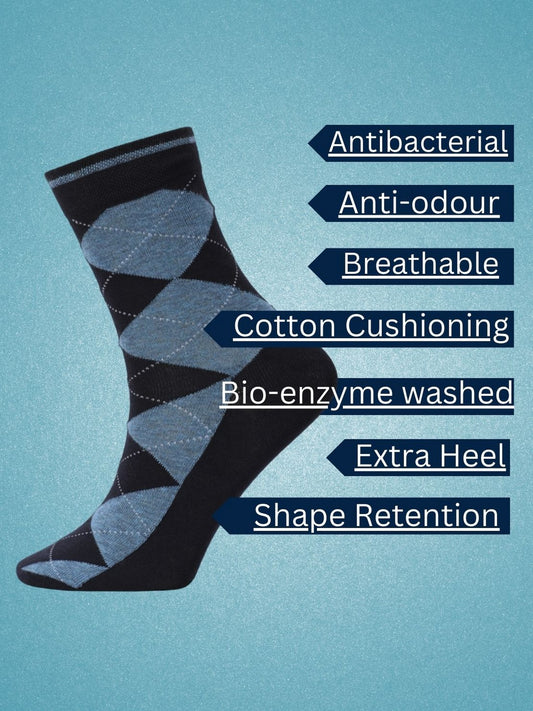 Hirolas Cotton Anti-Odour Breathable Antibacterial business Formal/office wear Crew full length Socks for Men (Free Size) | Made with 100% Combed Cotton and Spandex (Navy, Black, Grey) - Pack of 3 socks