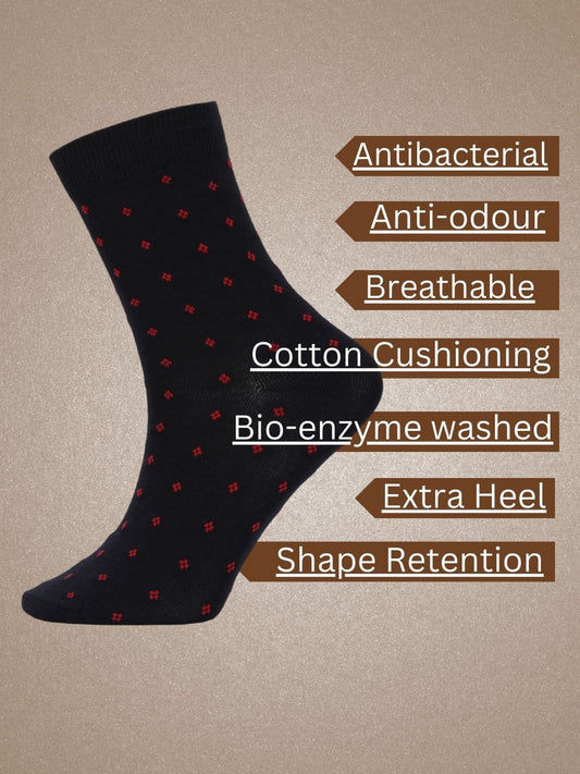 Hirolas Cotton Anti-Odour Breathable Antibacterial business Formal/office wear Crew full length Socks for Men (Free Size) | Made with 100% Combed Cotton and Spandex (Navy, Black, White) - Pack of 3 socks