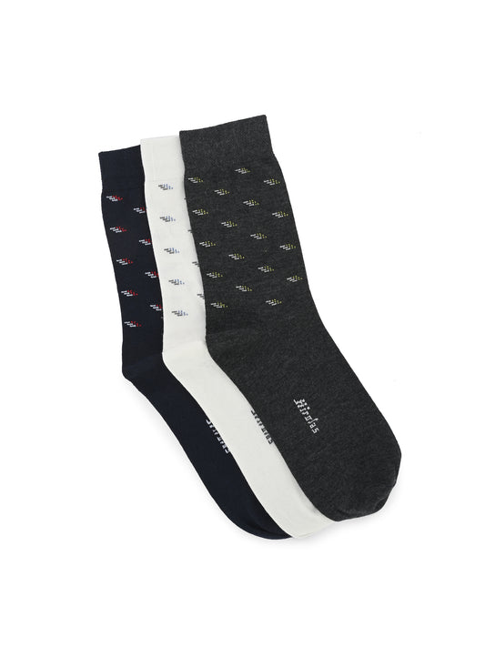 Hirolas Cotton Anti-Odour Breathable Antibacterial business Formal/office wear Crew full length Socks for Men (Free Size) | Made with 100% Combed Cotton and Spandex (Navy, White, Grey) - Pack of 3 socks