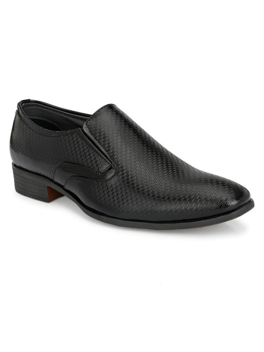 Guava Men's Black Textured Slip On Formal Shoes (GV15JA841)