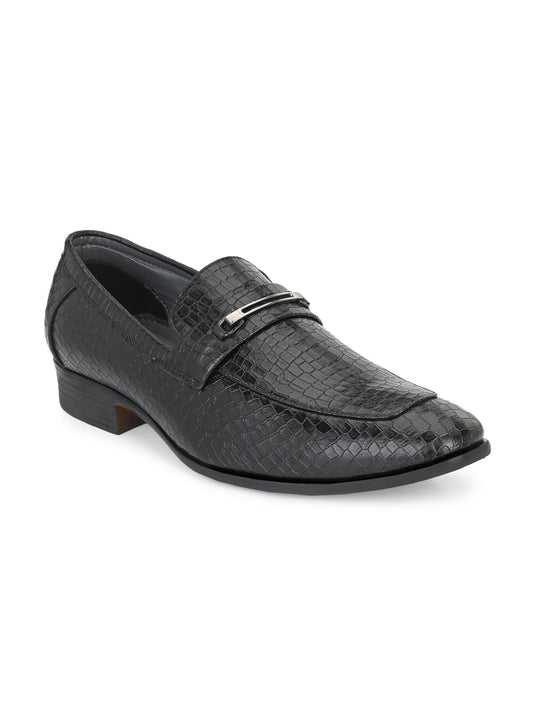 Guava Men's Black Croco Textured Slip On Formal Shoes (GV15JA853)